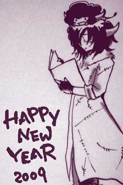師匠と件をもう一枚描いたのですが、今、単行本が手許になくて色が判らず、そのままになってます……ごめんなさい。……あっそうか本屋で覗いてくればいいのか!